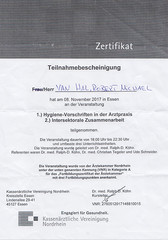 Herr Dr. med. Robert van Hal hat am 08. November 2017 an der Veranstaltung Hygiene-Vorschriften in der Arztpraxis und Intersektorale Zusammenarbeit der Kassenärztlichen Vereinigung Nordrhein in Essen teilgenommen.